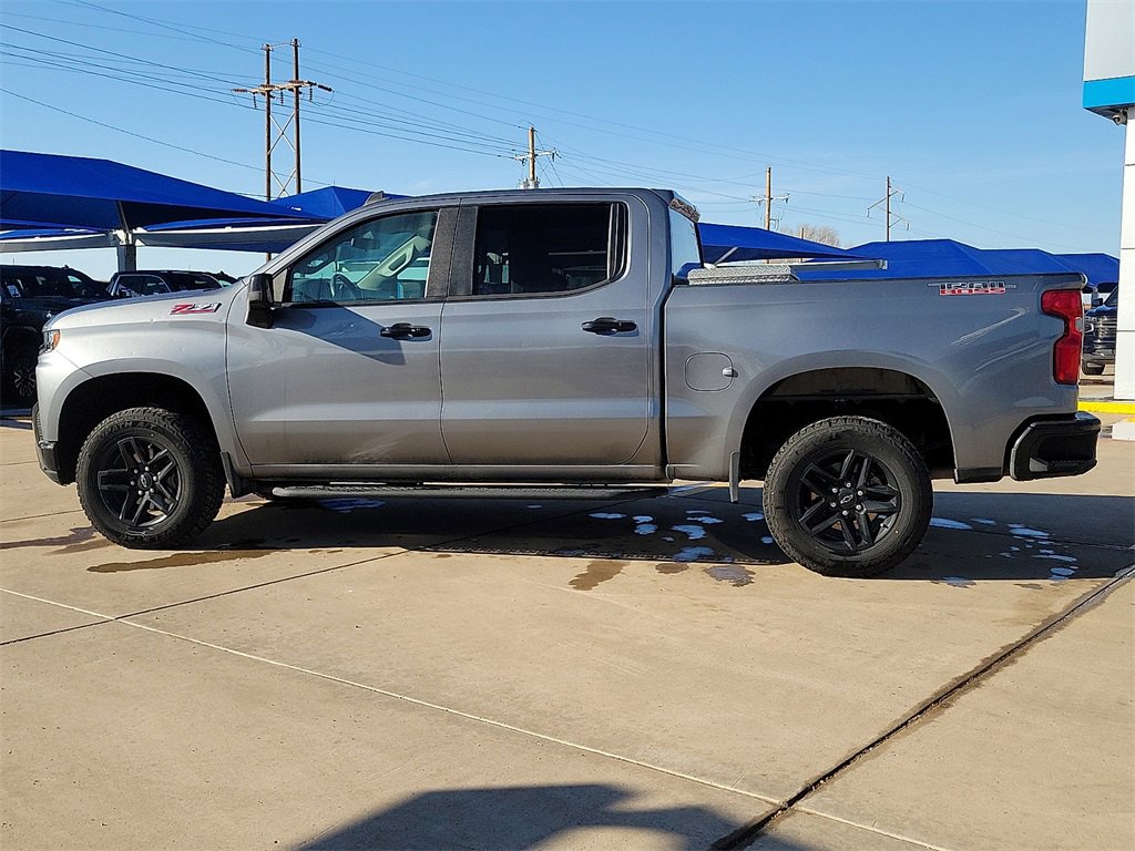 This 2021 Chevrolet Silverado 1500 LT Trail Boss EcoTec3 5.3L V8 10-Speed Automatic 4WD in Satin Steel Metallic comes with the following features: 10-Speed Automatic, 4WD, and Black Cloth Cloth Rear Seat w/Storage Package, Convenience Package w/Buckets Seats (10-Way Power Driver Seat w/Lumbar, Dual-Zone Automatic Climate Control, Floor Mounted Center Console, Heated Driver & Front Outboard Passenger Seats, Heated Steering Wheel, and Manual Tilt/Telescoping Steering Column), Preferred Equipment Group 2LT (12-Volt Rear Auxiliary Power Outlet, 170 Amp Alternator, 2 USB Ports (First Row), 4.2 Diagonal Color Display Driver Info Center, 4G LTE Wi-Fi Hot Spot Capable, 6-Speaker Audio System, All-Weather Floor Liner (LPO) (AAK), Auto-Locking Rear Differential, Auxiliary External Transmission Oil Cooler, Bluetooth® For Phone, Chevrolet Connected Access Capable, Color-Keyed Carpeting Floor Covering, Compass, Deep-Tinted Glass, Dual Exhaust w/Polished Outlets, Electric Rear-Window Defogger, Electrical Lock Control Steering Column, Electronic Cruise Control, EZ Lift Power Lock & Release Tailgate, Front LED Fog Lamps, High Gloss Black Grille, High Gloss Black Mirror Caps, Keyless Open & Start, Leather Wrapped Steering Wheel, LED Cargo Area Lighting, LED Reflector Headlamps, OnStar & Chevrolet Connected Services Capable, Performance Red Recovery Hooks, Power Door Locks, Power Front Windows w/Driver Express Up/Down, Power Front Windows w/Passenger Express Down, Power Rear Windows w/Express Down, Rear Dual USB Charging-Only Ports, Rear Vision Camera, Remote Vehicle Starter System, SiriusXM Radio, Standard Tailgate, Steering Wheel Audio Controls, and Theft Deterrent System (Unauthorized Entry)), Suspension Package (Heavy-Duty Air Filter and Hill Descent Control), Trailering Package (Hitch Guidance), 10-Speed Automatic, 4WD, Black Cloth, 3.23 Rear Axle Ratio, 4-Wheel Disc Brakes, 6 Speakers, ABS brakes, Air Conditioning, Alloy wheels, AM/FM radio: SiriusXM, Apple CarPlay/Android Auto, Automatic temperature control, Brake assist, Cloth Seat Trim, Delay-off headlights, Driver door bin, Driver vanity mirror, Dual front impact airbags, Dual front side impact airbags, Electronic Stability Control, Front anti-roll bar, Front Bucket Seats, Front Center Armrest w/Storage, Front dual zone A/C, Front fog lights, Front License Plate Kit, Front reading lights, Front wheel independent suspension, Fully automatic headlights, Heated door mirrors, Heated front seats, Heated steering wheel, Illuminated entry, Low tire pressure warning, Occupant sensing airbag, Off-Road Suspension w/2 Lift, Outside temperature display, Overhead airbag, Overhead console, Panic alarm, Passenger door bin, Passenger vanity mirror, Power door mirrors, Power driver seat, Power steering, Power windows, Premium audio system: Chevrolet Infotainment 3, Radio data system, Radio: Chevrolet Infotainment 3 System, Rear reading lights, Rear seat center armrest, Rear step bumper, Rear window defroster, Remote keyless entry, Security system, Speed control, Speed-sensing steering, Split folding rear seat, Steering wheel mounted audio controls, Tachometer, Telescoping steering wheel, Tilt steering wheel, Traction control, Trip computer, Variably intermittent wipers, Voltmeter, Wheel Locks (Set of 4) (LPO), and Wheels: 18 x 8.5 Black Painted Aluminum.Odometer is 9896 miles below market average!