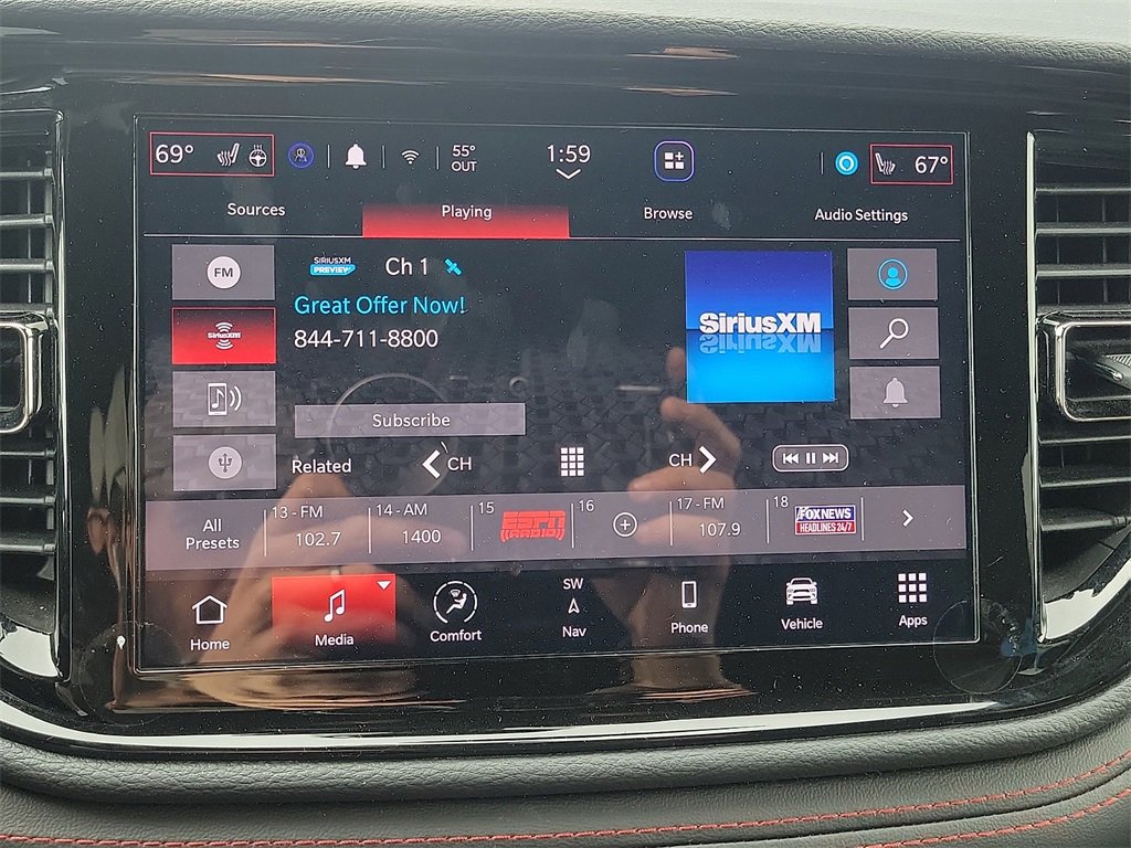 This 2025 Dodge Durango GT 3.6L V6 24V VVT 8-Speed Automatic RWD in Vapor Gray comes with the following features: Quick Order Package 2BD GT, 3.27 Rear Axle Ratio, 3rd row seats: split-bench, 4-Wheel Disc Brakes, 6 Speakers, ABS brakes, Air Conditioning, Alloy wheels, AM/FM radio: SiriusXM w/360L, Apple CarPlay/Android Auto, Auto-dimming Rear-View mirror, Auto-leveling suspension, Automatic temperature control, Brake assist, Bumpers: body-color, Cloth Bucket Seats w/Shift Insert, Compass, Delay-off headlights, Driver door bin, Driver vanity mirror, Dual front impact airbags, Dual front side impact airbags, Electronic Stability Control, Emergency communication system: Dodge Connect, Four wheel independent suspension, Front anti-roll bar, Front Bucket Seats, Front Center Armrest w/Storage, Front dual zone A/C, Front License Plate Bracket, Front reading lights, Fully automatic headlights, Garage door transmitter, Gloss Black Exterior Mirrors, Heated door mirrors, Heated front seats, Heated steering wheel, Illuminated entry, Knee airbag, Leather steering wheel, Low tire pressure warning, Navigation System, Occupant sensing airbag, Outside temperature display, Overhead airbag, Overhead console, Panic alarm, ParkView Rear Back-Up Camera, Passenger door bin, Passenger vanity mirror, Power door mirrors, Power driver seat, Power Liftgate, Power steering, Power windows, Radio data system, Radio: Uconnect 5 Nav w/10.1 Display, Rear air conditioning, Rear anti-roll bar, Rear Load Leveling Suspension, Rear reading lights, Rear seat center armrest, Rear window defroster, Rear window wiper, Remote keyless entry, Speed control, Speed-sensing steering, Speed-Sensitive Wipers, Split folding rear seat, Spoiler, Sport steering wheel, Steering wheel mounted audio controls, Tachometer, Telescoping steering wheel, Tilt steering wheel, Traction control, Trip computer, Variably intermittent wipers, Voltmeter, and Wheels: 18 x 8.0 Painted Aluminum.