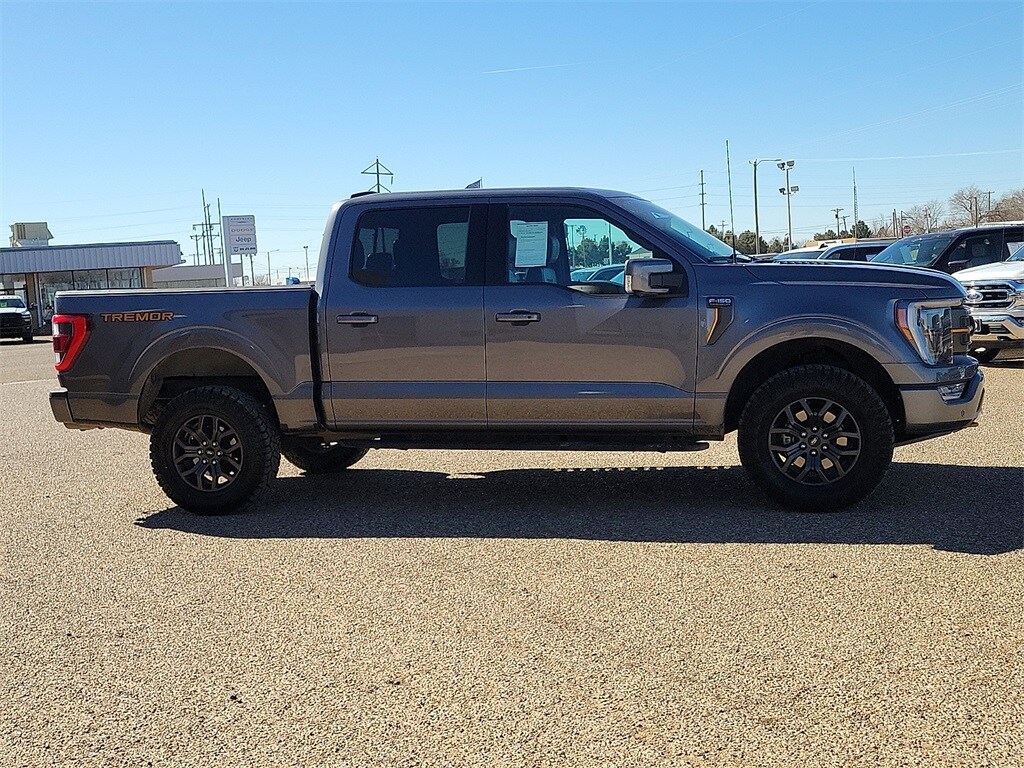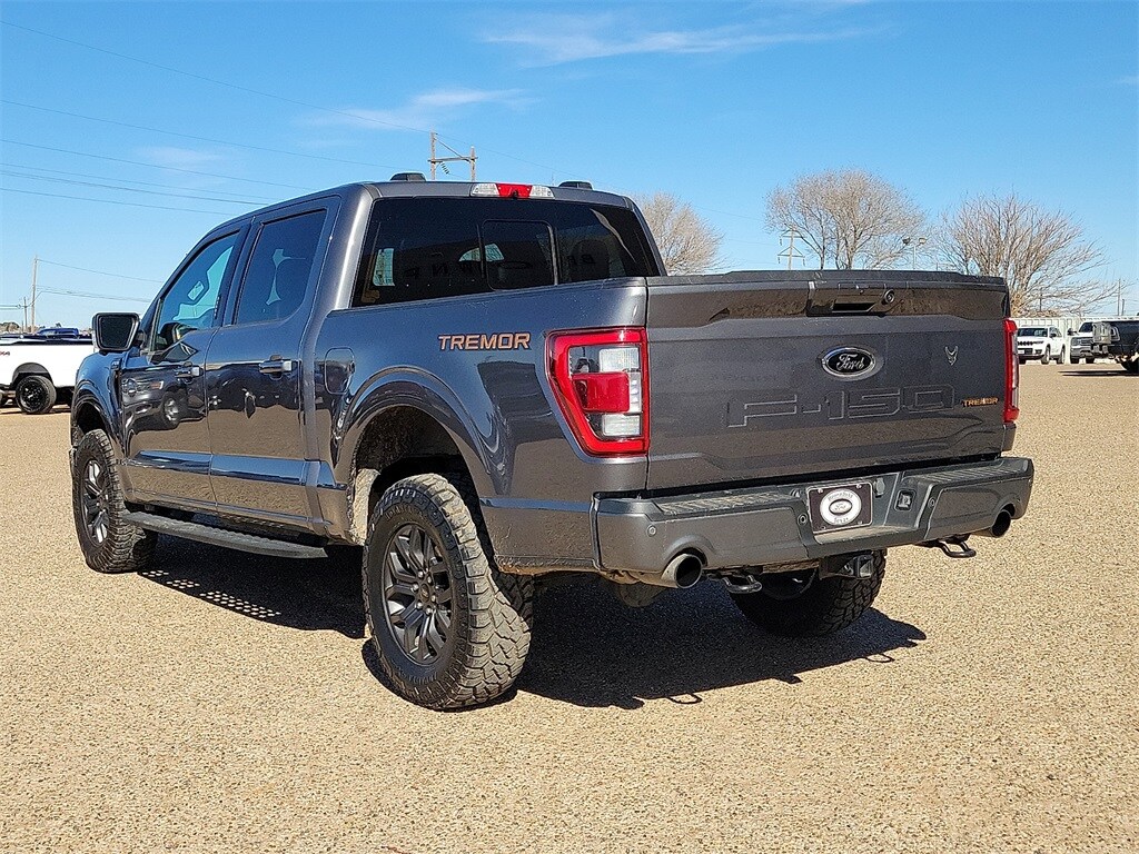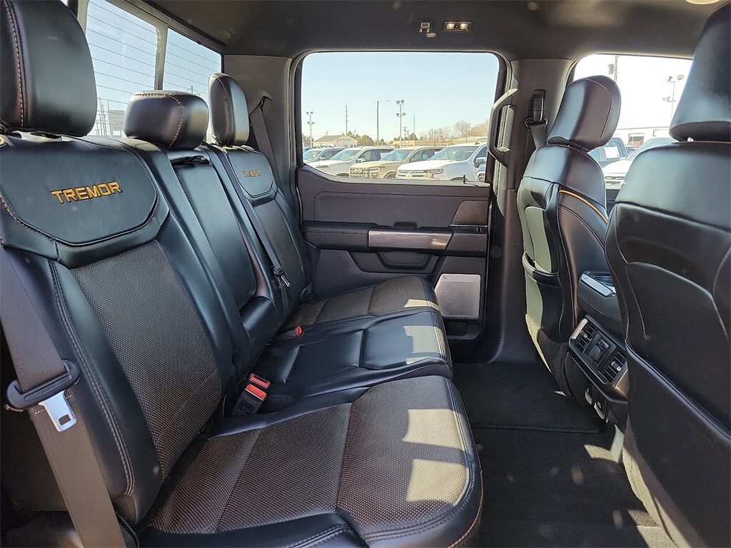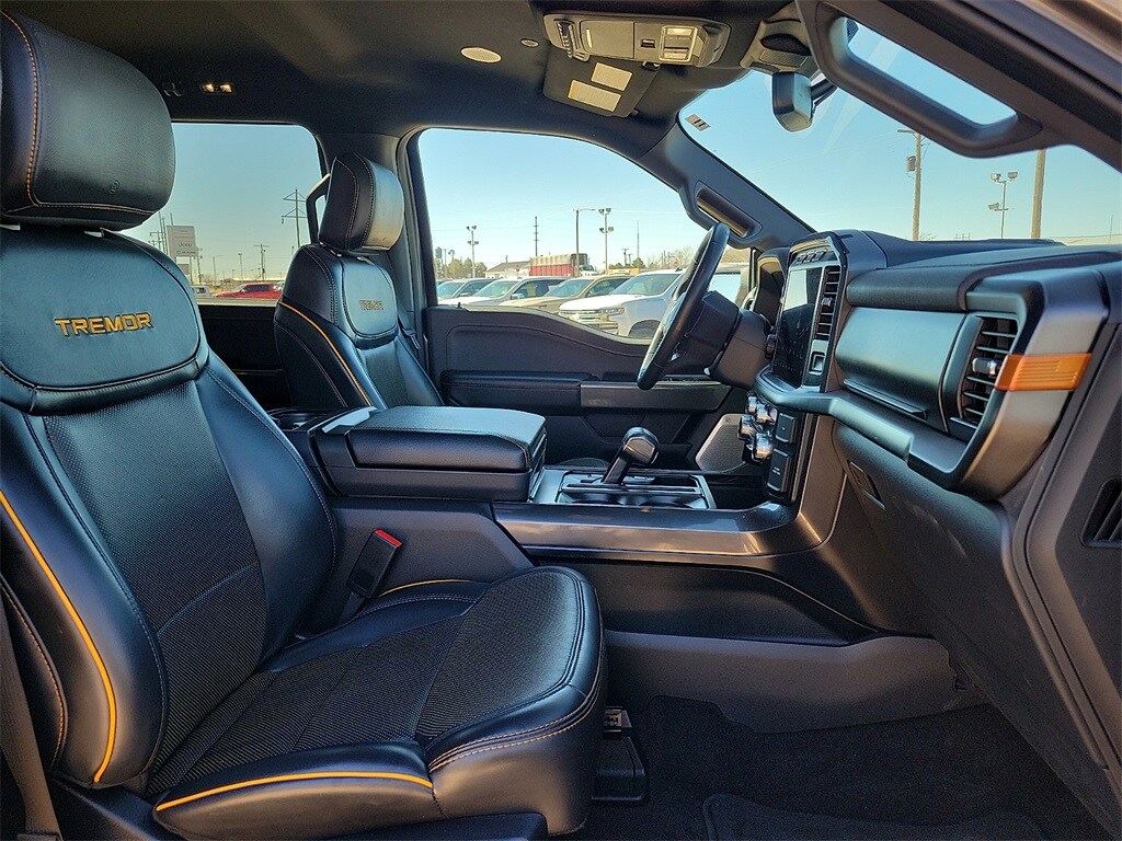 This 2023 Ford F-150 Tremor 3.5L V6 EcoBoost 10-Speed Automatic 4WD in Carbonized Gray Metallic comes with the following features: 4WD, ABS brakes, Alloy wheels, Compass, Electronic Stability Control, Front dual zone A/C, Heated door mirrors, Heated front seats, Illuminated entry, Low tire pressure warning, Remote keyless entry, and Traction control GVWR: 7,050 lbs Payload Package, 4WD, ABS brakes, Alloy wheels, Compass, Electronic Stability Control, Front dual zone A/C, Heated door mirrors, Heated front seats, Illuminated entry, Low tire pressure warning, Remote keyless entry, Traction control, 4-Wheel Disc Brakes, 6 Speakers, Air Conditioning, AM/FM radio: SiriusXM with 360L, Auto High-beam Headlights, Auto-dimming door mirrors, Automatic temperature control, Brake assist, Bumpers: body-color, Class IV Trailer Hitch Receiver, Delay-off headlights, Driver door bin, Dual front impact airbags, Dual front side impact airbags, Electronic Locking w/3.73 Axle Ratio, Emergency communication system: SYNC 4 911 Assist, Exterior Parking Camera Rear, Front anti-roll bar, Front Bucket Seats, Front Center Armrest, Front fog lights, Front reading lights, Front wheel independent suspension, Fully automatic headlights, Navigation system: Connected Navigation, Occupant sensing airbag, Outside temperature display, Overhead airbag, Overhead console, Panic alarm, Passenger door bin, Passenger vanity mirror, Power door mirrors, Power driver seat, Power passenger seat, Power steering, Power windows, Radio data system, Radio: AM/FM SiriusXM w/360L, Rear reading lights, Rear step bumper, Rear window defroster, Security system, Speed control, Speed-sensing steering, Split folding rear seat, Steering wheel mounted audio controls, SYNC 4 w/Enhanced Voice Recognition, Tachometer, Telescoping steering wheel, Tilt steering wheel, Trip computer, Turn signal indicator mirrors, Unique Sport Cloth 40/Console/40 Power Front Seat, Variably intermittent wipers, Voltmeter, and Wheels: 18" Alloy w/Dark Matte Finish.