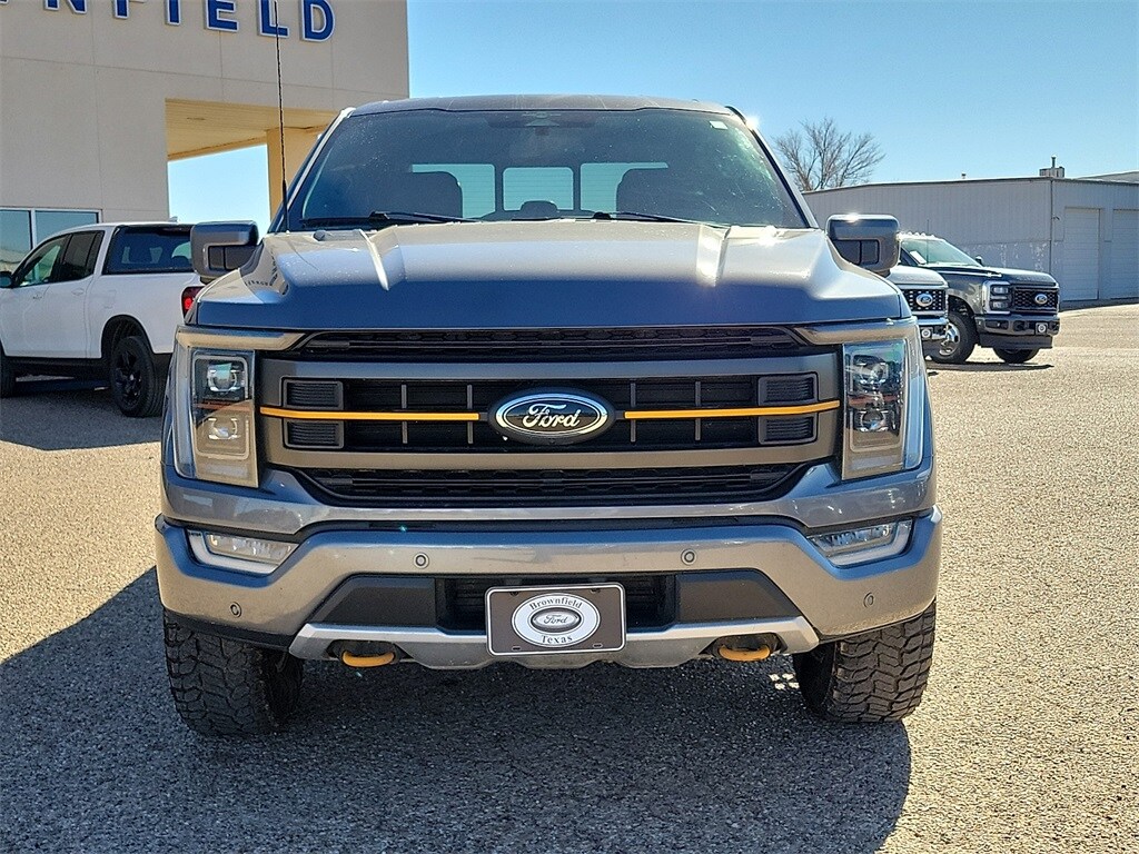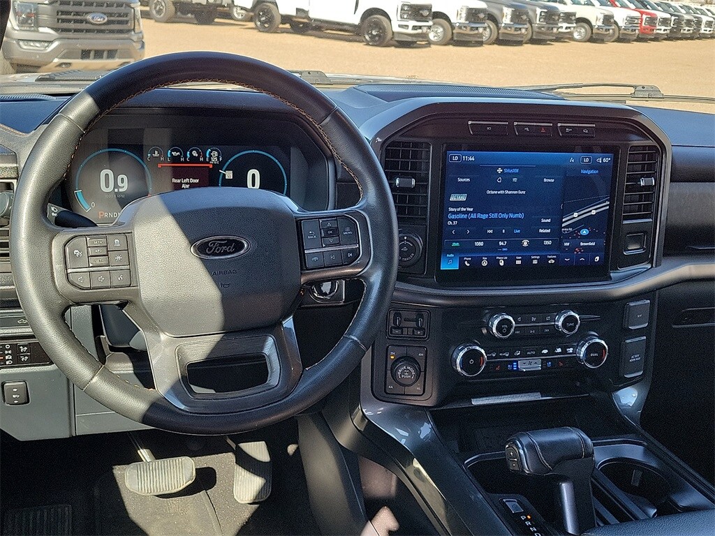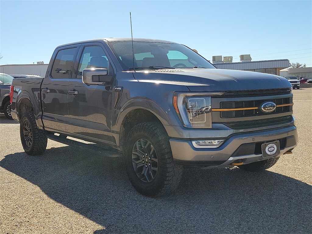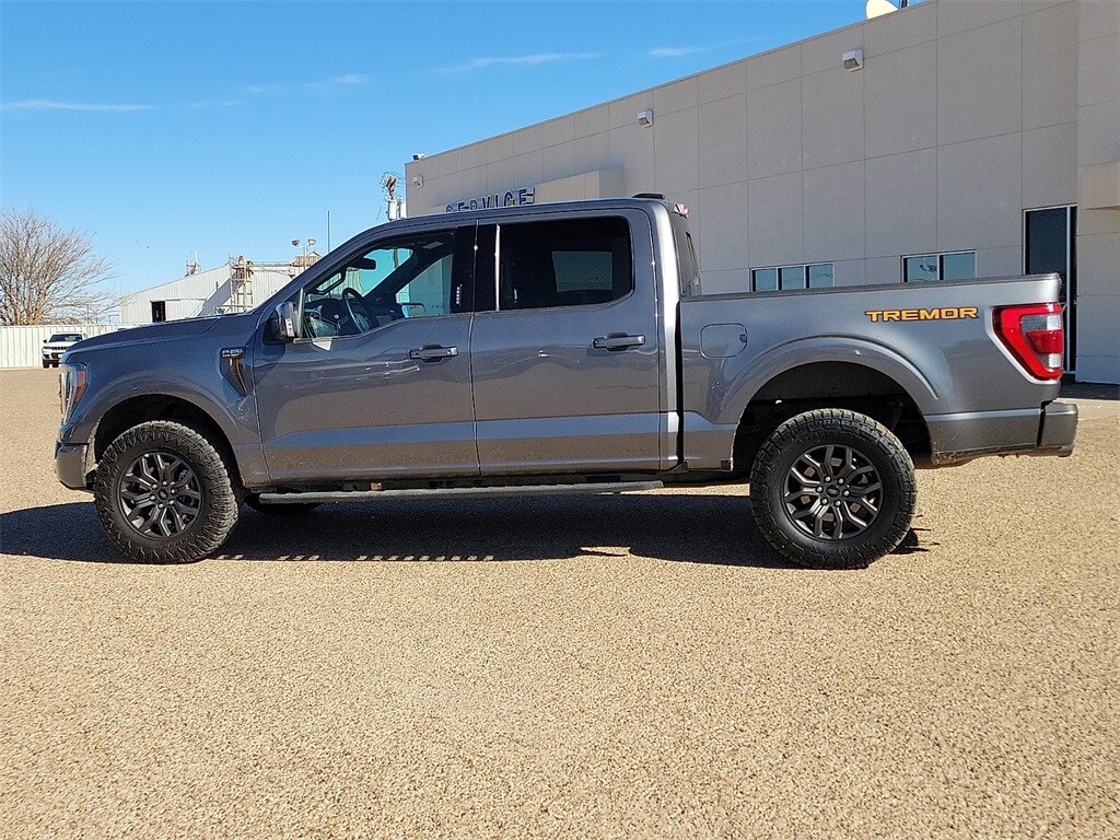 This 2023 Ford F-150 Tremor 3.5L V6 EcoBoost 10-Speed Automatic 4WD in Carbonized Gray Metallic comes with the following features: 4WD, ABS brakes, Alloy wheels, Compass, Electronic Stability Control, Front dual zone A/C, Heated door mirrors, Heated front seats, Illuminated entry, Low tire pressure warning, Remote keyless entry, and Traction control GVWR: 7,050 lbs Payload Package, 4WD, ABS brakes, Alloy wheels, Compass, Electronic Stability Control, Front dual zone A/C, Heated door mirrors, Heated front seats, Illuminated entry, Low tire pressure warning, Remote keyless entry, Traction control, 4-Wheel Disc Brakes, 6 Speakers, Air Conditioning, AM/FM radio: SiriusXM with 360L, Auto High-beam Headlights, Auto-dimming door mirrors, Automatic temperature control, Brake assist, Bumpers: body-color, Class IV Trailer Hitch Receiver, Delay-off headlights, Driver door bin, Dual front impact airbags, Dual front side impact airbags, Electronic Locking w/3.73 Axle Ratio, Emergency communication system: SYNC 4 911 Assist, Exterior Parking Camera Rear, Front anti-roll bar, Front Bucket Seats, Front Center Armrest, Front fog lights, Front reading lights, Front wheel independent suspension, Fully automatic headlights, Navigation system: Connected Navigation, Occupant sensing airbag, Outside temperature display, Overhead airbag, Overhead console, Panic alarm, Passenger door bin, Passenger vanity mirror, Power door mirrors, Power driver seat, Power passenger seat, Power steering, Power windows, Radio data system, Radio: AM/FM SiriusXM w/360L, Rear reading lights, Rear step bumper, Rear window defroster, Security system, Speed control, Speed-sensing steering, Split folding rear seat, Steering wheel mounted audio controls, SYNC 4 w/Enhanced Voice Recognition, Tachometer, Telescoping steering wheel, Tilt steering wheel, Trip computer, Turn signal indicator mirrors, Unique Sport Cloth 40/Console/40 Power Front Seat, Variably intermittent wipers, Voltmeter, and Wheels: 18" Alloy w/Dark Matte Finish.
