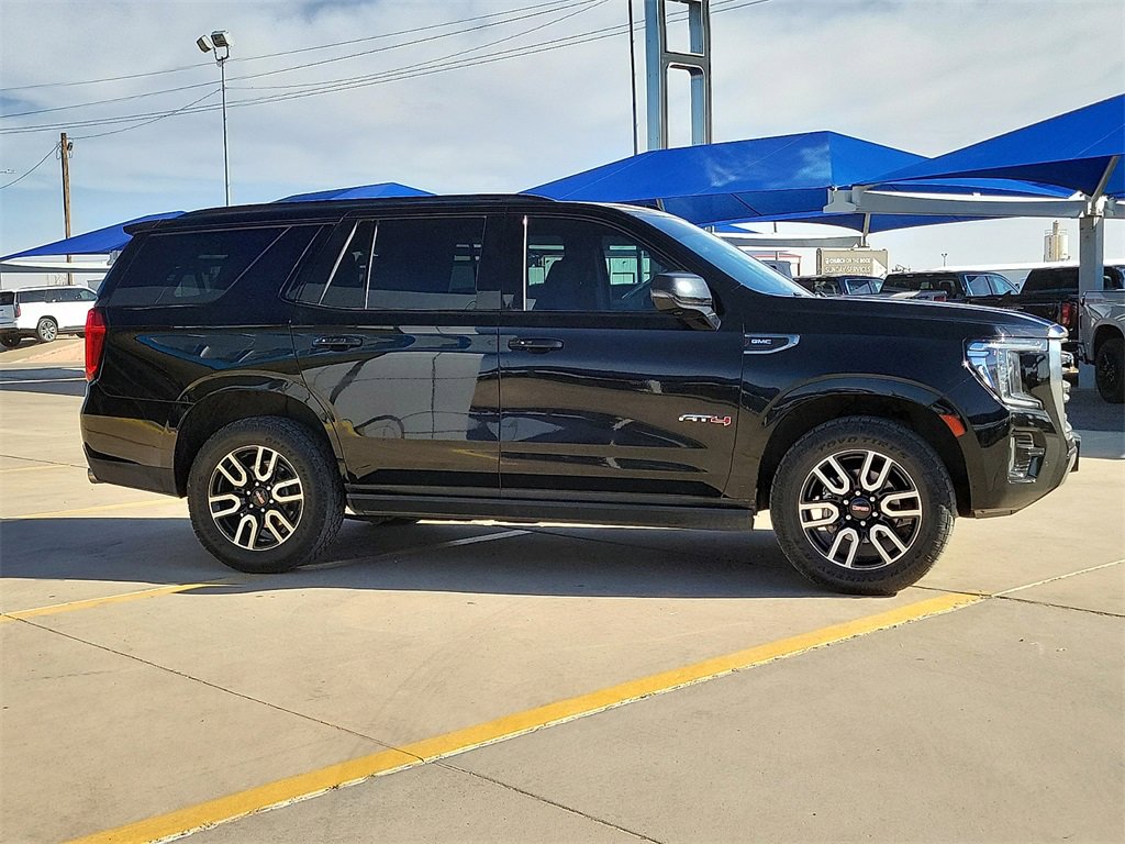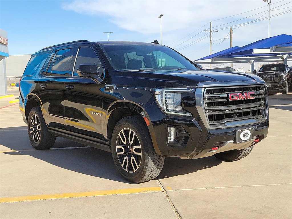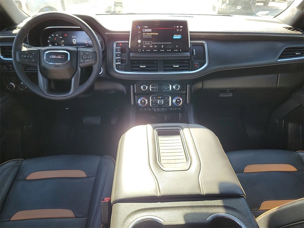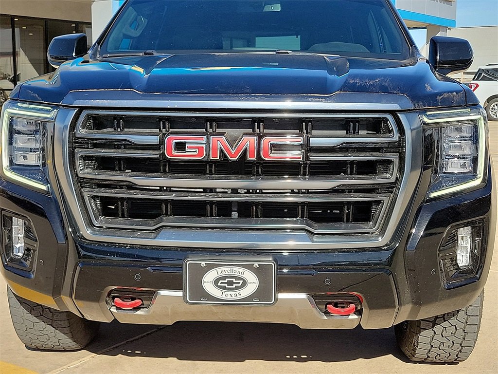 This 2022 GMC Yukon AT4 EcoTec3 6.2L V8 10-Speed Automatic with Overdrive 4WD in Onyx Black comes with the following features: 4WD License Plate Front Mounting Package, Preferred Equipment Group 4SB (2 Presets For Outside Rearview Mirrors, 3 Years of GMC Connected Services, 3rd Row 60/40 Power-Folding Split-Bench Seat, Automatic Stop/Start, Black Roof-Mounted Luggage Rack Side Rails, Bose 9-Speaker Stereo Audio System Feature, Bright Front & Rear Door Sill Plates, Front High-Approach Angle Fascia, Hands-Free Power Programmable Rear Liftgate, Heated & Ventilated Driver & Front Passenger Seats, Heated 2nd Row Outboard Position Seats, Heated Driver & Front Passenger Seats, Heated Steering Wheel, Heavy-Duty Air Filter, Hill Descent Control, Inside Rear-View Auto-Dimming Mirror, Outside Heated Power-Adjustable Mirrors, Power Release 2nd Row 60/40 Split-Folding Bench Seat, Power Tilt & Telescopic Steering Column, Red Horizontal-Mounted Recovery Hooks, Safety Alert Seat, Start/Stop System Disable Button, Universal Home Remote, and Wireless Charging), 4WD, 3.23 Rear Axle Ratio, 3rd row seats: split-bench, 4-Wheel Disc Brakes, 9 Speakers, ABS brakes, Adaptive suspension, Air Conditioning, Alloy wheels, AM/FM radio: SiriusXM with 360L, AM/FM Stereo, Apple CarPlay/Android Auto, Auto High-beam Headlights, Auto-dimming door mirrors, Auto-dimming Rear-View mirror, Auto-leveling suspension, Automatic Emergency Braking, Automatic temperature control, Brake assist, Bumpers: body-color, Compass, Delay-off headlights, Driver door bin, Driver vanity mirror, Dual Exhaust System, Dual front impact airbags, Dual front side impact airbags, Dual-Pane Panoramic Power Sunroof, Electronic Stability Control, Emergency communication system: OnStar and GMC Connected Services capable, Following Distance Indicator, Forward Collision Alert, Four wheel independent suspension, Front & Rear Park Assist, Front anti-roll bar, Front Bucket Seats, Front Center Armrest, Front dual zone A/C, Front fog lights, Front Pedestrian Braking, Front reading lights, Fully automatic headlights, Garage door transmitter, Heated door mirrors, Heated front seats, Heated rear seats, Heated steering wheel, Illuminated entry, IntelliBeam Automatic High Beam On/Off, Lane Change Alert w/Side Blind Zone Alert, Lane Keep Assist w/Lane Departure Warning, Leather steering wheel, Low tire pressure warning, Magnetic Ride Control Suspension, Memory seat, Navigation System, Not Equipped w/4-Way Driver & Fr Pass Pwr Lumbar, Not Equipped w/Front & Rear Park Assist, Not Equipped w/Heated Steering Wheel (DISC), Not Equipped w/Steering Column Lock, Occupant sensing airbag, Outside temperature display, Overhead airbag, Overhead console, Panic alarm, Passenger door bin, Passenger vanity mirror, Perforated Leather Seating Surfaces, Power door mirrors, Power driver seat, Power Liftgate, Power passenger seat, Power Release 2nd Row Bucket Seats, Power steering, Power windows, Power-Retractable Assist Steps, Rain sensing wipers, Rear air conditioning, Rear anti-roll bar, Rear Cross Traffic Alert, Rear reading lights, Rear seat center armrest, Rear window defroster, Rear window wiper, Remote keyless entry, Roof rack: rails only, Security system, SiriusXM w/360L, Speed control, Speed-sensing steering, Split folding rear seat, Spoiler, Steering wheel memory, Steering wheel mounted audio controls, Tachometer, Telescoping steering wheel, Tilt steering wheel, Traction control, Trip computer, Turn signal indicator mirrors, Variably intermittent wipers, Ventilated front seats, Voltmeter, Wheel Locks (Set of 4) (LPO), and Wheels: 20 x 9 6-Spoke Machined Aluminum.