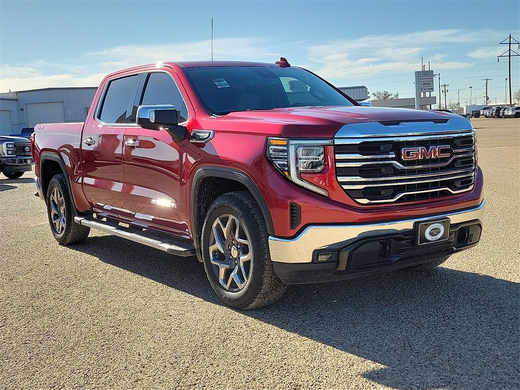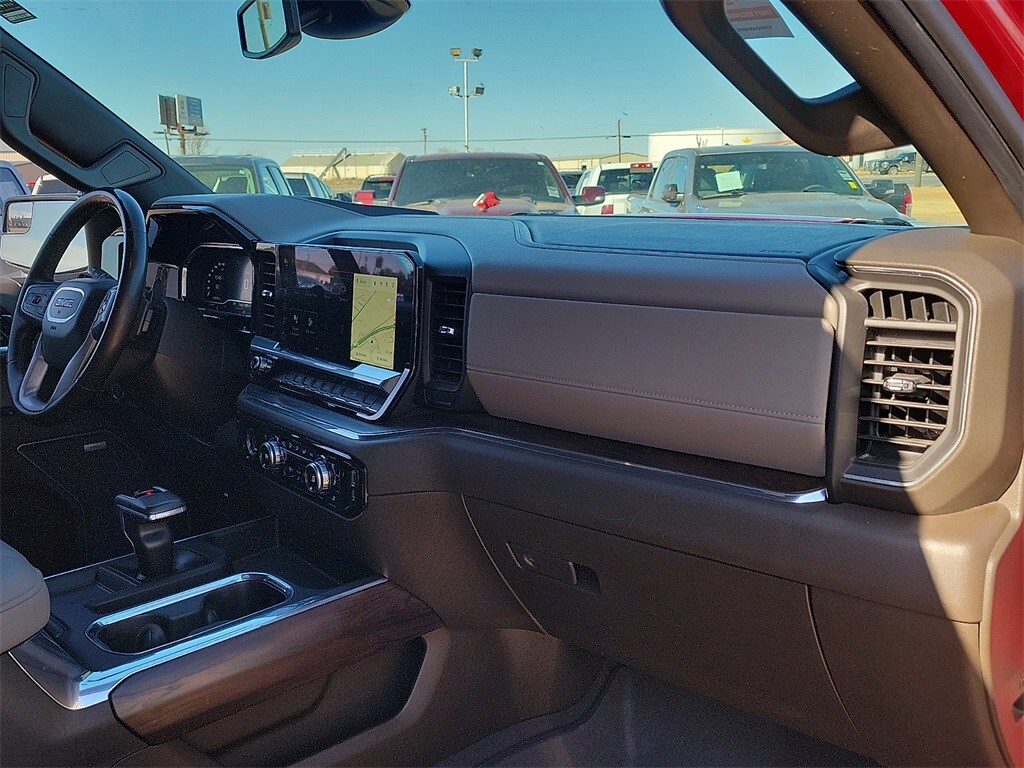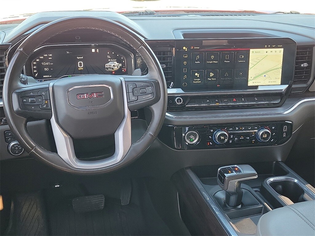 This 2023 GMC Sierra 1500 SLT EcoTec3 5.3L V8 10-Speed Automatic 4WD in Volcanic Red Tintcoat comes with the following features: 10-Speed Automatic, 4WD, and Dark Walnut/Slate Leather High Capacity Suspension Package, Preferred Equipment Group 4SA (120-Volt Bed Mounted Power Outlet, 120-Volt Instrument Panel Power Outlet, 170 Amp Alternator, 2 Charge/Data USB Ports, 2 Type-C Charge-Only Rear USB Ports, 6-Speaker Audio System Feature, Auto-Locking Rear Differential, Auxiliary External Transmission Oil Cooler, Chrome Header & Chrome Grille Insert Bars, Color-Keyed Carpeting Floor Covering, Compass, Deep-Tinted Glass, Electric Rear-Window Defogger, Electrical Steering Column Lock, Front Frame-Mounted Black Recovery Hooks, Front Rainsensing Wipers, GMC Connected Access Capable, HD Rear Vision Camera, Keyless Open & Start, LED Cargo Area Lighting, Manual Tilt-Wheel & Telescoping Steering Column, OnStar & GMC Connected Services Capable, Perimeter Lighting, Power Door Locks, Power Front Passenger Windows w/Express Up/Down, Power Front Windows w/Driver Express Up/Down, Power Rear Windows w/Express Down, Push Button Start, Rear Wheelhouse Liners, Remote Vehicle Starter System, SiriusXM w/360L, Steering Wheel Audio Controls, Theft Deterrent System (Unauthorized Entry), Wi-Fi Hotspot Capable, and Wireless Phone Projection), SLT Convenience Package (2 Charge/Data USB Ports Inside Center Console, Electronic Precision Shift, Floor-Mounted Center Console, Front Bucket Seats, Power Rake & Telescoping Steering Column, Premium Bose 7-Speaker Sound System, Ventilated Driver & Front Passenger Seats, and Wireless Charging), Standard Suspension Package, Texas Edition SLT Premium Package (20" Polished Aluminum Wheels, Chrome Wheel To Wheel Assist Steps, and Texas Edition Badging), Trailering Package (Hitch Guidance), X31 Off-Road & Protection Package (All-Weather Floor Liner (LPO) and Spray-On Pickup Bed Liner w/GMC Logo), X31 Off-Road Package (Dual Exhaust System, Heavy-Duty Air Filter, Hill Descent Control, Off-Road Suspension, and X31 Hard Badge), 10-Speed Automatic, 4WD, Dark Walnut/Slate Leather, 10-Way Power Driver Seat Adjuster w/Lumbar, 10-Way Power Passenger Seat Adjuster w/Lumbar, 3.23 Rear Axle Ratio, 4-Wheel Disc Brakes, 6 Speakers, ABS brakes, Air Conditioning, Alloy wheels, AM/FM radio, Apple CarPlay/Android Auto, Auto High-beam Headlights, Auto-dimming door mirrors, Auto-dimming Rear-View mirror, Automatic Emergency Braking, Automatic temperature control, Brake assist, Buckle to Drive, Bumpers: chrome, Cargo Tie-Downs (4) (LPO), Delay-off headlights, Driver door bin, Driver Memory, Driver vanity mirror, Dual front impact airbags, Dual front side impact airbags, Electronic Stability Control, Emergency communication system: OnStar and GMC connected services capable, Engine Block Heater, Following Distance Indicator, Forward Collision Alert, Front 40/20/40 Split-Bench Seat, Front anti-roll bar, Front Center Armrest w/Storage, Front dual zone A/C, Front fog lights, Front License Plate Kit, Front Pedestrian Braking, Front reading lights, Front wheel independent suspension, Fully automatic headlights, Heated door mirrors, Heated Driver & Front Outboard Passenger Seating, Heated front seats, Heated steering wheel, Illuminated entry, IntelliBeam Automatic High Beam On/Off, Lane Keep Assist w/Lane Departure Warning, Low tire pressure warning, Memory seat, Navigation System, Not Equipped w/Steering Column Lock, Not Equipped with GMC MultiPro Tailgate, Occupant sensing airbag, Outside temperature display, Overhead airbag, Overhead console, Panic alarm, Passenger door bin, Passenger vanity mirror, Perf Leather-Appointed Front Outboard Seat Trim, Power door mirrors, Power driver seat, Power passenger seat, Power steering, Power windows, Premium audio system: GMC Infotainment System, Radio data system, Radio: Premium GMC Infotainment Audio System, Rain sensing wipers, Rear reading lights, Rear seat center armrest, Rear step bumper, Rear window defr