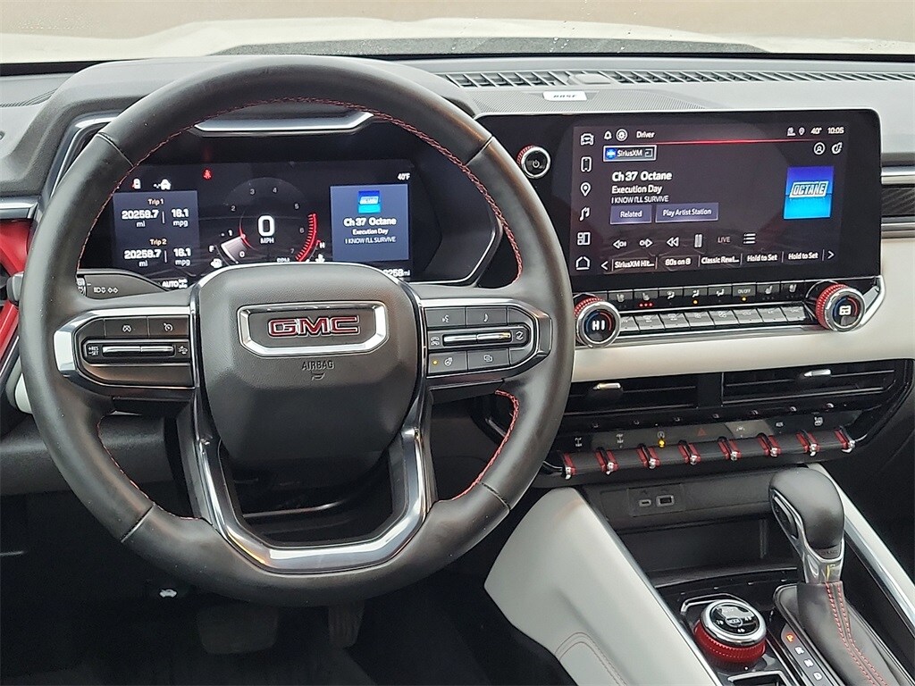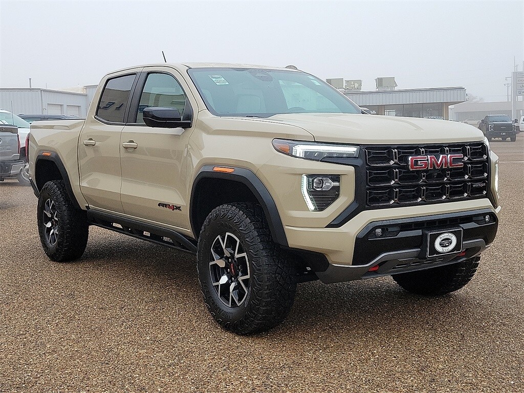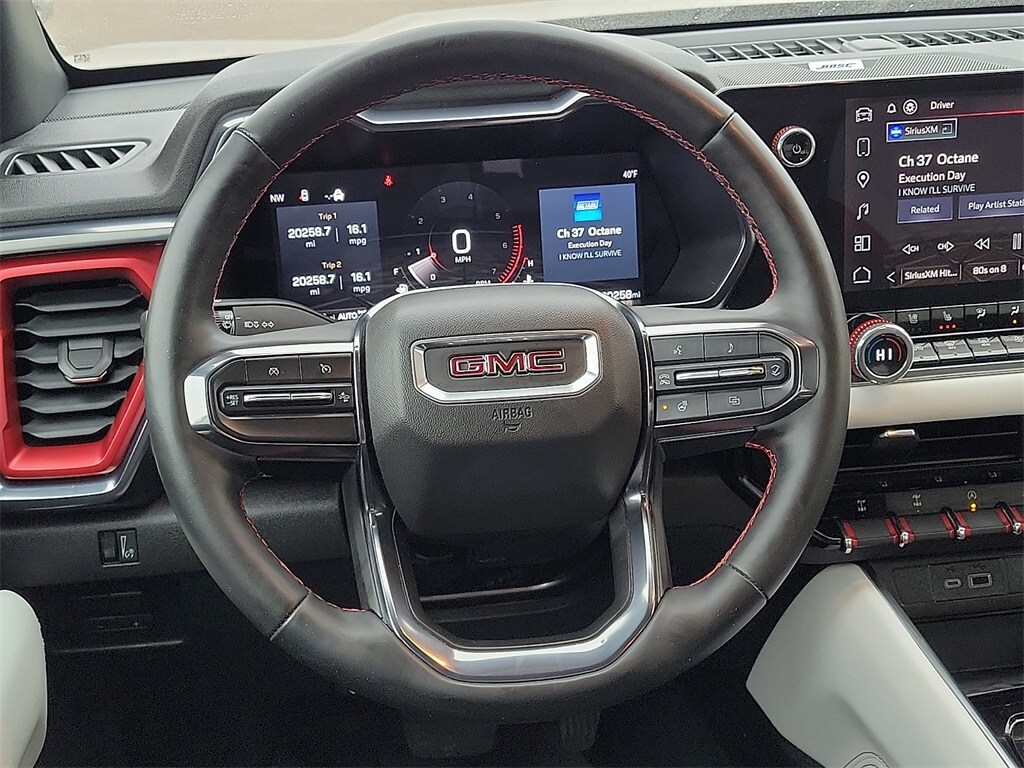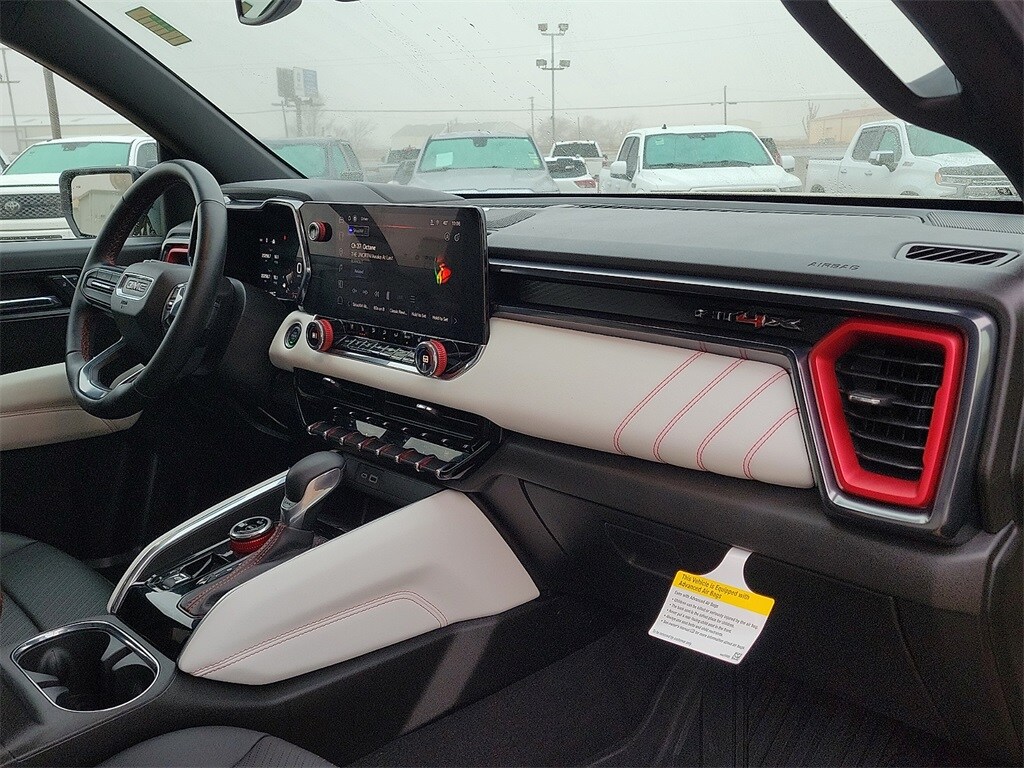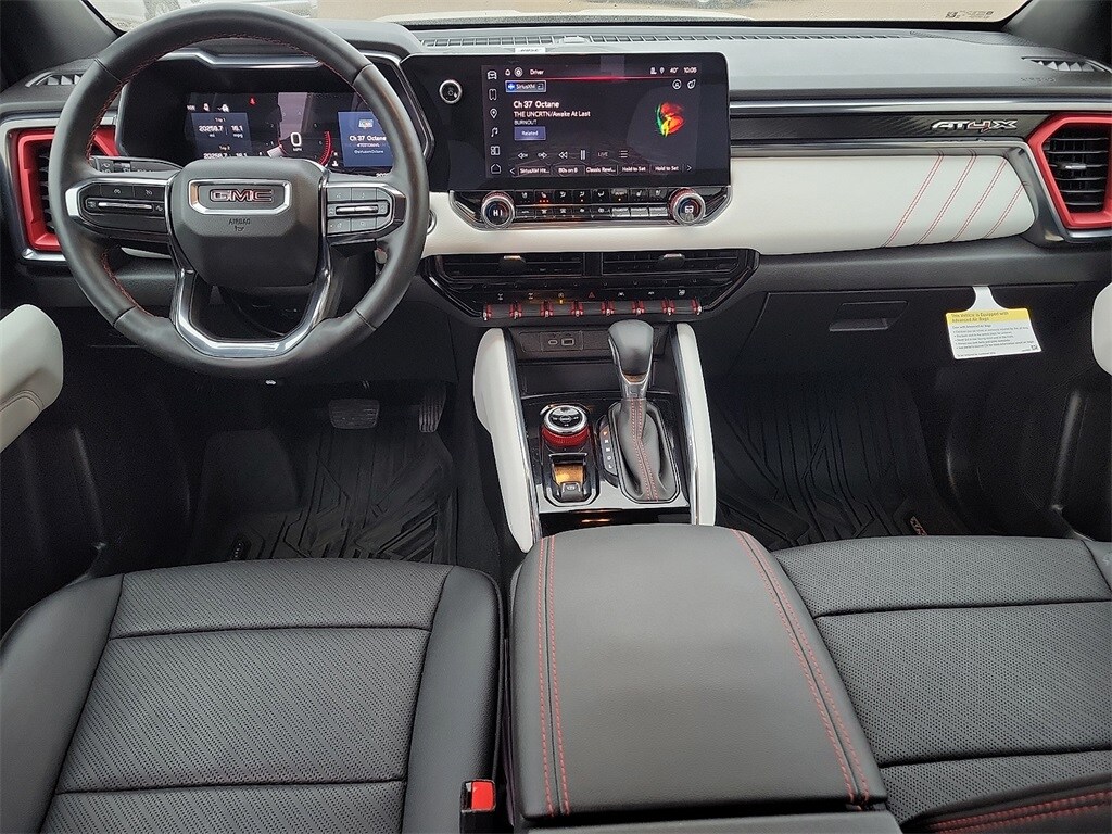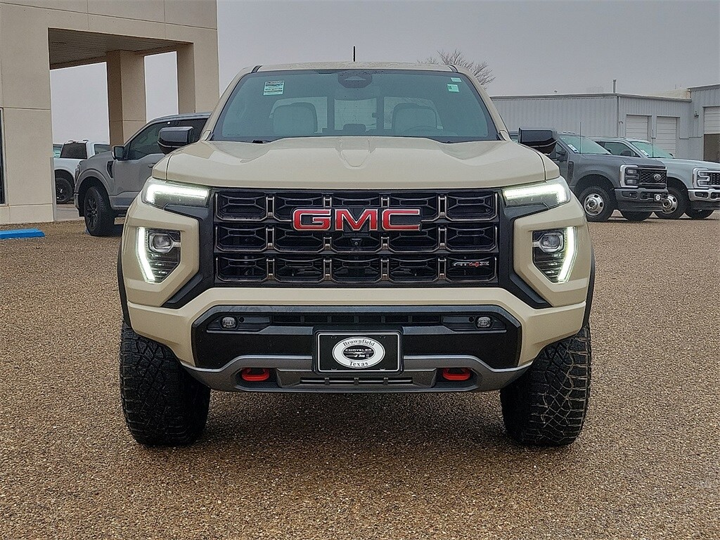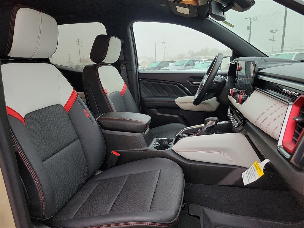 This 2024 GMC Canyon AT4X 2.7L I4 Turbocharged DOHC 16V LEV3-SULEV30 310hp 8-Speed Automatic 4WD in Desert Sand Metallic comes with the following features: 4WD Preferred Equipment Group 4TX (120-Volt Bed Mounted Power Outlet, 2 Rear USB Ports in Center Console (Charge-Only), 220 Amps Alternator, 6-Way Power Passenger Seat Adjuster, 8-Way Power Driver Seat Adjuster, Adaptive Cruise Control, Automatic Emergency Braking, Canyon Pro Safety, Driver & Front Passenger Illuminated Visors, Driver & Front Passenger Ventilated Seats, Driver Memory, Driver Seatback Map Pocket, Driver-Selectable Full-Locking Front Differential, Driver-Selectable Full-Locking Rear Differential, Dual-Zone Automatic Air Conditioning, EZ-Lift & Lower Tailgate, Following Distance Indicator, Forward Collision Alert, Front LED Fog Lamps, Front Pedestrian & Bicyclist Braking, HD Surround Vision, Heated Driver & Front Passenger Seats, Heated Power-Adjustable Outside Mirrors, Heated Steering Wheel, Inside Rear-View Auto-Dimming Mirror, Integrated Trailer Brake Controller, IntelliBeam Automatic High Beam On/Off, Interior Overhead Courtesy Light w/Dual Reading Lamp, Lane Keep Assist w/Lane Departure Warning, Manual Rear-Sliding Window, Multicolor 6.3" Diagonal Head-Up Display, MultiStow Tailgate, Power Driver Lumbar Control Seat Adjuster, Power Passenger Lumbar Control Seat Adjuster, Premium 7-Speaker Bose Sound System, Rear Center Fold-Down Armrest w/2 Cupholders, Rear Cross Traffic Braking, Rear of Console 120-Volt Power Outlet, Rear Pedestrian Alert, Rear-Window Electric Defogger, Remote Vehicle Starter System, Safety Alert Seat, Spray-On Bedliner, Tailgate Keyed Cylinder Lock, Tilt & Telescopic Manual Steering Column, Trailering App System, Ultrasonic Rear Park Assist, and Wireless Charging), Trailering Package, 4WD, 2 1st Row USB Charge/Data Ports, 3.42 Rear Axle Ratio, 4-Wheel Disc Brakes, 7 Speakers, ABS brakes, Air Conditioning, Alloy wheels, AM/FM radio, Apple CarPlay/Android Auto, Audio System by Kicker (LPO), Auto High-beam Headlights, Auto-dimming Rear-View mirror, Automatic Stop/Start, Automatic temperature control, Black Badges (LPO), Brake assist, Bumpers: body-color, Cargo Area Lamps (LPO), Compass, Delay-off headlights, Driver door bin, Driver Mode Selector, Driver vanity mirror, Dual front impact airbags, Dual front side impact airbags, Electronic Stability Control, Front anti-roll bar, Front Bucket Seats, Front Center Armrest, Front dual zone A/C, Front fog lights, Front License Plate Kit, Front Passenger Seatback Map Pocket, Front reading lights, Front wheel independent suspension, GMC Black Chrome Exhaust Tip (LPO), Heads-Up Display, Heated door mirrors, Heated front seats, Heated steering wheel, Illuminated entry, Low tire pressure warning, Memory seat, Navigation system: OnStar, Occupant sensing airbag, Outside temperature display, Overhead airbag, Overhead console, Panic alarm, Passenger door bin, Passenger vanity mirror, Perforated Leather-Appointed Seat Trim, Power door mirrors, Power driver seat, Power passenger seat, Power steering, Power windows, Radio data system, Radio: 11.3" Diagonal Premium GMC Infotainment Sys, Rear reading lights, Rear seat center armrest, Rear step bumper, Rear window defroster, Remote keyless entry, Security system, SiriusXM w/360L, Speed control, Speed-sensing steering, Split folding rear seat, Steering wheel mounted audio controls, Stop/Start System Disable Button Engine Control, Tachometer, Telescoping steering wheel, Tilt steering wheel, Traction control, Trip computer, Variably intermittent wipers, Ventilated front seats, Wheels: 17" x 8" Black High Gloss Machined Finish, and Wireless Apple CarPlay/Wireless Android Auto.