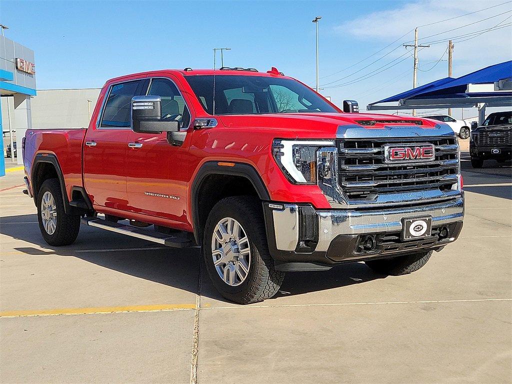 Recent Arrival! This 2024 GMC Sierra 2500HD SLT Duramax 6.6L V8 Turbodiesel 10-Speed Automatic 4WD in Cardinal Red comes with the following features: 10-Speed Automatic, 4WD, and Dark Walnut/Slate Leather Gooseneck/5th Wheel Prep Package (HD Rear Vision Camera Delete and Spray-On Bedliner), Preferred Equipment Group 4SA (120-Volt Bed Mounted Power Outlet, 120-Volt Instrument Panel Power Outlet, 2 Charge-Only Rear USB Ports, 2 Charge/Data USB Ports, 2-Speed Active Transfer Case, 6-Speaker Audio System Feature, Chrome Surround Grille w/Chrome Insert Bars, Deep-Tinted Glass, Electric Rear-Window Defogger, Front Rain-Sensing Wipers, GMC Connected Access Capable, Heated Driver & Front Outboard Passenger Seats, Integrated Trailer Brake Controller, Keyless Open & Start, LED Cargo Area Lighting, Manual Tilt-Wheel/Telescoping Steering Column, OnStar & GMC Connected Services Capable, Power Front Passenger Windows w/Express Up/Down, Push Button Start, Rear Wheelhouse Liners, Remote Vehicle Starter System, SiriusXM w/360L, Steering Wheel Audio Controls, Unauthorized Entry Theft-Deterrent System, and Wireless Phone Projection), Sierra HD Pro Safety Plus Package (Bed View Camera w/2 Trailer Camera Provisions, HD Surround Vision, Rear Cross Traffic Alert, Safety Alert Seat, Trailer Cam Provisions & Trailer Viewing Software, Trailer Side Blind Zone Alert, and Ultrasonic Front & Rear Park Assist), SLT Convenience Package (2 Charge/Data USB Ports Inside Center Console, Bose Premium 7-Speaker Sound System, Floor-Mounted Center Console, Front Bucket Seats, LED Smoked Amber Roof Marker Lamps, Ventilated Driver & Front Passenger Seats, and Wireless Charging), SLT Preferred Package (Adaptive Cruise Control, Heated 2nd Row Outboard Seats, Power Sliding Rear Window w/Defogger, and Universal Home Remote), Suspension Package, Texas SLT Premium Package (6 Rectangular Chromed Tubular Assist Steps and Texas Edition Badging), X31 Off-Road Package (Hill Descent Control and Off-Road Suspension), 10-Speed Automatic, 4WD, Dark Walnut/Slate Leather, 10-Way Power Driver Seat Adjuster w/Lumbar, 10-Way Power Passenger Seat Adjuster w/Lumbar, 18 Machined Aluminum Wheels, 20 Machined Aluminum Wheels, 220-Amp Alternator, 4-Wheel Disc Brakes, 6 Speakers, ABS brakes, Air Conditioning, Alloy wheels, AM/FM radio: SiriusXM with 360L, Apple CarPlay/Android Auto, Auto High-beam Headlights, Auto-dimming door mirrors, Auto-dimming Rear-View mirror, Automatic Emergency Braking, Automatic temperature control, Brake assist, Buckle to Drive, Bumpers: chrome, Compass, Delay-off headlights, Driver door bin, Driver Memory, Driver vanity mirror, Dual front impact airbags, Dual front side impact airbags, Electronic Stability Control, Engine Block Heater, Exhaust Brake, Following Distance Indicator, Forward Collision Alert, Front 40/20/40 Split-Bench Seats, Front anti-roll bar, Front Center Armrest w/Storage, Front dual zone A/C, Front fog lights, Front License Plate Kit, Front Pedestrian Braking, Front reading lights, Front wheel independent suspension, Fully automatic headlights, Heated door mirrors, Heated front seats, Heated steering wheel, Heavy-Duty 80 Amp Battery, Hitch Guidance w/Hitch View, Illuminated entry, In-Vehicle Trailering System App, IntelliBeam Automatic High Beam On/Off, Lane Departure Warning System, Low tire pressure warning, Memory seat, Occupant sensing airbag, Outside temperature display, Overhead airbag, Overhead console, Panic alarm, Passenger door bin, Passenger vanity mirror, Perf Leather-Appointed Front Outboard Seat Trim, Pickup Box, Power door mirrors, Power driver seat, Power passenger seat, Power steering, Power windows, Premium audio system: Premium GMC Infotainment System, Radio: AM/FM w/Premium GMC Infotainment System, Rain sensing wipers, Rear reading lights, Rear seat center armrest, Rear step bumper, Rear window defroster, Remote keyless entry, Security system, Speed control, Speed-sensing steering
