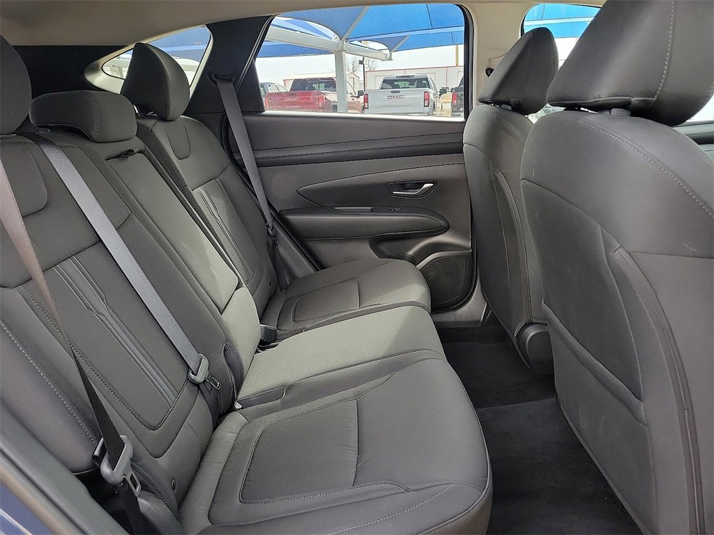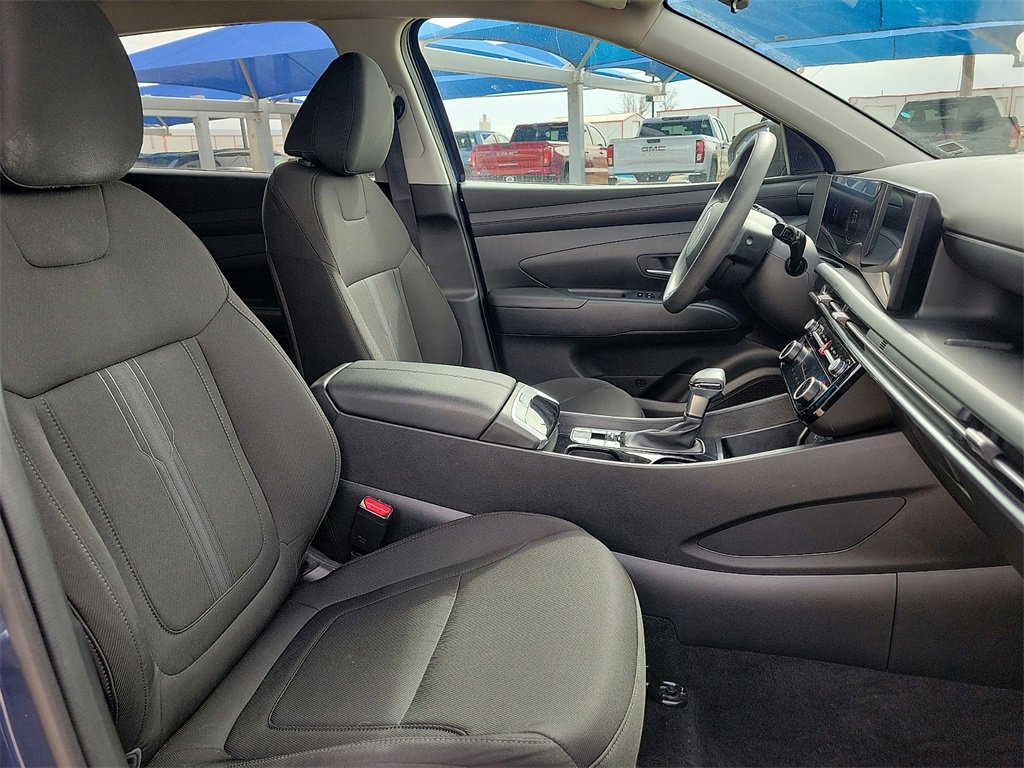 This 2025 Hyundai Tucson SEL 2.5L I4 DGI DOHC 16V LEV3-SULEV30 187hp 8-Speed Automatic with SHIFTRONIC FWD in Atlantis Blue comes with the following features: Option Group 01, 18 Alloy Wheels, 4-Wheel Disc Brakes, 6 Speakers, ABS brakes, Air Conditioning, Alloy wheels, AM/FM radio: SiriusXM, Apple CarPlay & Android Auto, Auto High-beam Headlights, Automatic temperature control, Brake assist, Bumpers: body-color, Delay-off headlights, Driver door bin, Driver vanity mirror, Dual front impact airbags, Dual front side impact airbags, Electronic Stability Control, Emergency communication system: Bluelink+, Four wheel independent suspension, Front anti-roll bar, Front Bucket Seats, Front Center Armrest, Front dual zone A/C, Front reading lights, Fully automatic headlights, Heated door mirrors, Heated Front Bucket Seats, Heated front seats, Illuminated entry, Low tire pressure warning, Occupant sensing airbag, Outside temperature display, Overhead airbag, Overhead console, Panic alarm, Passenger door bin, Passenger vanity mirror, Power door mirrors, Power driver seat, Power Liftgate, Power steering, Power windows, Radio data system, Radio: AM/FM/HD Audio System, Rear anti-roll bar, Rear reading lights, Rear seat center armrest, Rear side impact airbag, Rear window defroster, Rear window wiper, Remote keyless entry, Security system, Speed control, Split folding rear seat, Spoiler, Stain & Odor Resistant Cloth Seat Trim, Steering wheel mounted audio controls, Tachometer, Telescoping steering wheel, Tilt steering wheel, Traction control, Trip computer, and Variably intermittent wipers.Odometer is 3691 miles below market average!25/33 City/Highway MPG