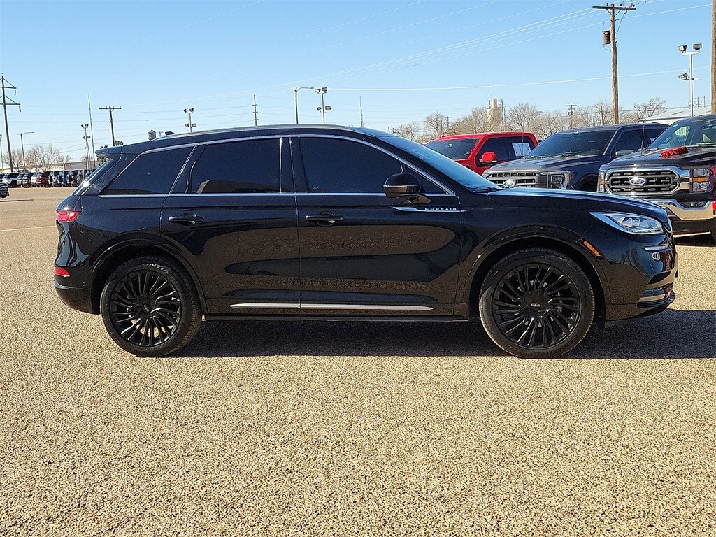 This 2021 Lincoln Corsair Reserve 2.0L I4 8-Speed Automatic FWD in Black comes with the following features: Elements Package (Heated Rear Seat, Heated Steering Wheel, Rain Sensing Wipers, and Windshield Wiper De-Icer), Equipment Group 201A, Lincoln Co-Pilot360 Plus Package (360-Degree Camera w/Rear Camera Washer, Active Park Assist Plus, Adaptive Cruise Control w/Traffic Jam Assist, Evasive Steering Assist (ESA), Forward Sensing System, and Reverse Brake Assist), Monochromatic Package - Infinite Black (Body-Color Front & Rear Bumpers, Body-Color Grille, Body-Color Rocker Panel, Monochromatic Badging, and Wheels: 20" Black Aluminum), Technology Package (Additional Rear USB Ports (Types A & C), Heads-Up Display, Jeweled LED Headlamps, Lincoln Star Media Bin Light Prem Ambient Lighting, Phone As A Key, and Wireless Charging Pad), 14 Speakers, 19" Bright Machined Aluminum Wheels, 3.81 Axle Ratio, 4-Wheel Disc Brakes, ABS brakes, Air Conditioning, Alloy wheels, AM/FM radio: SiriusXM, Auto High-beam Headlights, Auto tilt-away steering wheel, Auto-dimming door mirrors, Auto-dimming Rear-View mirror, Automatic temperature control, Brake assist, Bumpers: body-color, Compass, Delay-off headlights, Driver door bin, Driver vanity mirror, Dual front impact airbags, Dual front side impact airbags, Electronic Stability Control, Emergency communication system, Four wheel independent suspension, Front anti-roll bar, Front Bucket Seats, Front Center Armrest, Front dual zone A/C, Front fog lights, Front reading lights, Fully automatic headlights, Garage door transmitter, Heated door mirrors, Heated front seats, Illuminated entry, Knee airbag, Leather steering wheel, Low tire pressure warning, Memory seat, Navigation System, Occupant sensing airbag, Outside temperature display, Overhead airbag, Overhead console, Panic alarm, Passenger door bin, Passenger vanity mirror, Power door mirrors, Power driver seat, Power Liftgate, Power moonroof: Panoramic Vista Roof, Power passenger seat, Power steering, Power windows, Premium Leather Heated Comfort Seats, Radio data system, Radio: Revel Audio System w/HD Radio & MP3, Rear anti-roll bar, Rear reading lights, Rear seat center armrest, Rear window defroster, Rear window wiper, Remote keyless entry, Security system, SiriusXM Radio, Speed control, Speed-sensing steering, Speed-Sensitive Wipers, Split folding rear seat, Spoiler, Steering wheel memory, Steering wheel mounted A/C controls, Steering wheel mounted audio controls, SYNC 3 Communications & Entertainment System, Tachometer, Telescoping steering wheel, Tilt steering wheel, Traction control, Trip computer, Turn signal indicator mirrors, and Variably intermittent wipers.