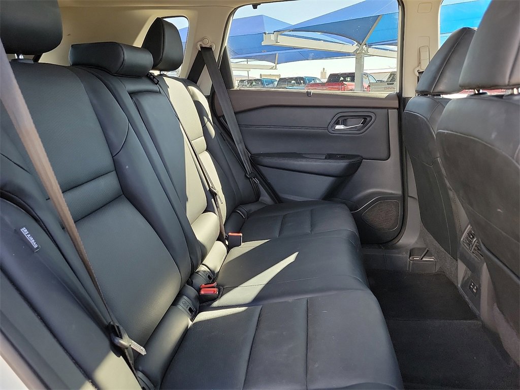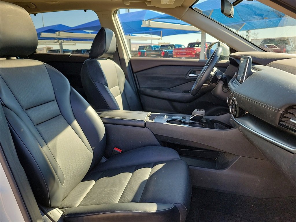 This 2023 Nissan Rogue SV 1.5L I3 Turbocharged DOHC 12V LEV3-ULEV50 201hp CVT with Xtronic FWD in Pearl White Tricoat comes with the following features: SV Premium Package (DISC) (PRIMATEX Leatherette Seat Trim (DISC)), 18 Aluminum Alloy Wheels, 4-Wheel Disc Brakes, 5.604 Axle Ratio, 6 Speakers, ABS brakes, Air Conditioning, Alloy wheels, AM/FM Radio, AM/FM radio: SiriusXM, Auto High-beam Headlights, Automatic temperature control, Black Splash Guards (Set of 4), Brake assist, Bumpers: body-color, Chrome Rear Bumper Protector, Cloth Seat Trim, Delay-off headlights, Driver door bin, Driver vanity mirror, Dual front impact airbags, Dual front side impact airbags, Electronic Stability Control, Emergency communication system: NissanConnect Services, Floor Mats w/1-Piece Cargo Area Protector, Four wheel independent suspension, Front anti-roll bar, Front Bucket Seats, Front Center Armrest, Front dual zone A/C, Front reading lights, Fully automatic headlights, Heated door mirrors, Illuminated entry, Knee airbag, Low tire pressure warning, NissanConnect featuring Apple CarPlay and Android Auto, Occupant sensing airbag, Outside temperature display, Overhead airbag, Overhead console, Panic alarm, Passenger door bin, Passenger vanity mirror, Power door mirrors, Power driver seat, Power steering, Power windows, Radio data system, Rear anti-roll bar, Rear Parking Sensors, Rear seat center armrest, Rear side impact airbag, Rear window defroster, Rear window wiper, Remote keyless entry, Security system, Speed control, Speed-Sensitive Wipers, Split folding rear seat, Spoiler, Steering wheel mounted audio controls, Tachometer, Telescoping steering wheel, Tilt steering wheel, Traction control, Trip computer, Turn signal indicator mirrors, and Variably intermittent wipers.30/37 City/Highway MPG
